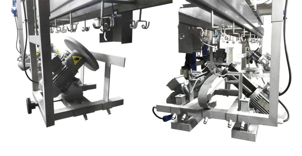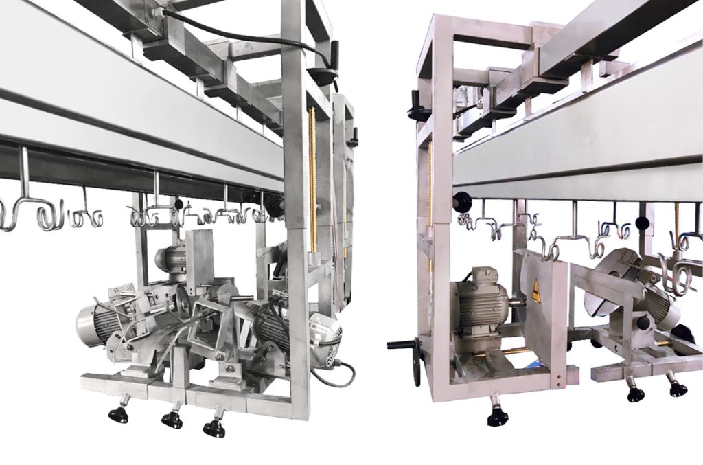 Hay estaciones de corte simple como cortar la pechuga con el hueso y los cuartos traseros, mientras que en otras estaciones se pueden realizar cortes más precisos.